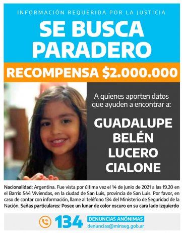 Las fuerzas de seguridad en San Luis iniciaron hoy una nueva jornada de búsqueda de Guadalupe Lucero, la nena de 5 años desaparecida en San Luis desde el 14 de junio. Los nuevos rastrillajes tienen como epicentro "el dique La Florida, sus adyacencias, la localidad de El Trapiche y el barrio 544 Viviendas", informó el jefe de Relaciones Policiales, Lucas Chacón, al iniciar el operativo.