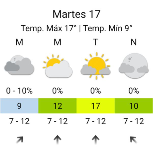 El miércoles, por su parte, también será una jornada agradable con similares características climáticas que el martes: el termómetro irá desde los 8 a los 15 grados, estimativamente, y el cielo estará ligeramente nublado, con viento soplando -inicialmente- desde el Este, para luego hacerlo desde el Sur.