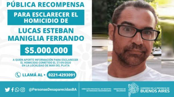 El Gobierno bonaerense ofreció una recompensa de hasta 5 millones de pesos para quien aporte información para esclarecer el homicidio de Lucas Maniglia, asesinado en el 2020 en la ciudad de Mar del Plata por delincuentes que ingresaron a robar a una casa lindera a la suya y que efectuaron disparos para cubrir la fuga.