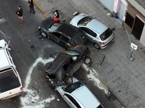 Un violento choque en cadena, que involucró a siete vehículos, ocurrió este viernes en la localidad bonaerense de Quilmes. Por el fuerte impacto, una camioneta quedó arriba de dos automóviles.