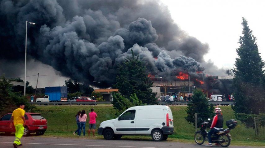 Se incendia un depósito de colchones en Castelar. El fuego generó un importante humo negro que afectó la zona entre el puente Santa Rosa y el Puente de Barcala.