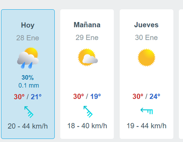 El miércoles tendrá con condiciones similares a las de hoy, ya que tendría cielo parcialmente nublado, con una temperatura mínima de 23 grados y una máxima que treparía a 30.