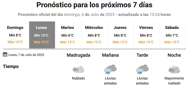 Según informa el organismo oficial, en horas de la mañana de este lunes 7 de julio de 2025 volverán las lluvias a la Capital Federal y el Gran Buenos Aires.