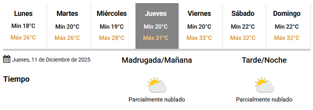 El SMN ya anticipó el regreso del calor intenso y será el próximo jueves 11 de diciembre, cuando el termómetro marque 31 grados de máxima. En tanto, la mínima de esa jornada será de 20 grados, por lo que nuevamente Buenos Aires arderá ante un cielo parcialmente nublado y un viento que provendrá del Noroeste durante toda la jornada.