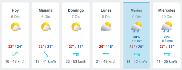 En tanto, según el sitio meteorológico Meteored, las precipitaciones llegarían el próximo martes 9 de diciembre y se extenderían, al menos, hasta el viernes 12.