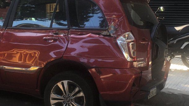 Una camioneta bordó fue embestida por detrás, provocándole rotura de paragolpes y abollamientos en las puertas, con la mayoría de los golpes del lado de la calle.