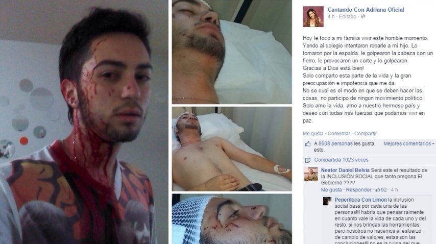 El joven fue salvajemente golpeado con un fierro en la cabeza cuando delincuentes quisieron asaltarlo a la salida del colegio. La cantante infantil compartió su angustia a través de las redes sociales.