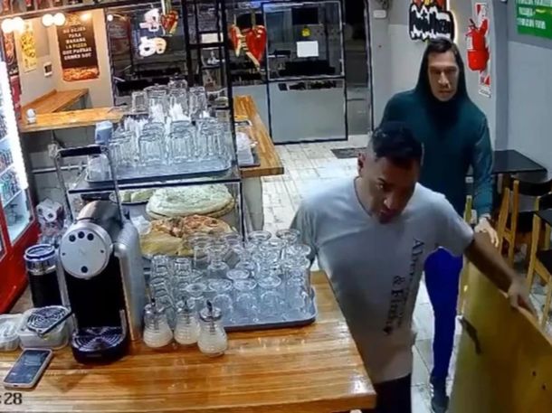 Dos delincuentes ingresaron sin cubrirse el rostro, amenazaron a las empleadas y escaparon a pie mientras comían pizza delante de todos.