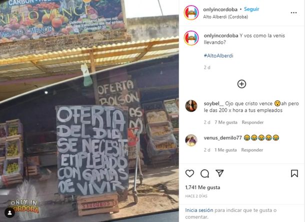 La publicación de una cuenta de Instagram de un local cordobés desató una ola de comentarios y se hizo viral.