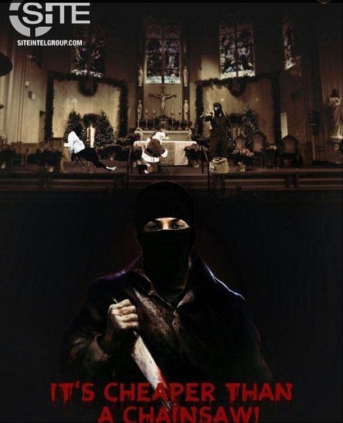 La imagen fue publicada en las redes sociales por los yihadistas luego de que divulgaran una serie de postales donde constantemente amenazan con llevar a cabo un atentado en esa ciudad estadounidense. En una de ellas se puede ver a un terrorista con un cuchillo en la mano. “Es más barato que una motosierra”, se puede leer allí, donde además aparece la figura de Papá Noel arrodillado a la espera de ser decapitado.