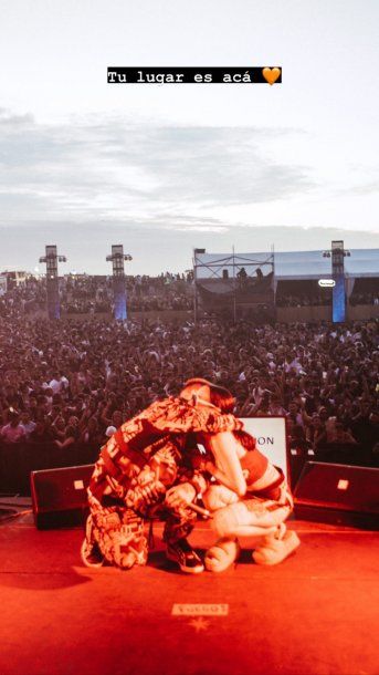 Mientras tanto La Joaqui le envió su apoyo a través de las redes sociales. Con una historia en su cuenta de Instagram, La Joaqui compartió fotos y un video. En una de las imágenes se los puede ver a los dos abrazados en el escenario, acompañada de la frase: "Tu lugar es acá".