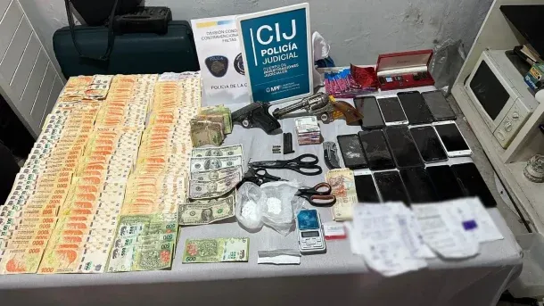 El resultado del operativo múltiple y simultáneo fue altamente positivo. Lograron secuestrar un rifle de aire comprimido calibre 5.5, una escopeta, 48 teléfonos celulares, tres pistolas Bersa calibre 22, 71 cartuchos calibre 22, 39 municiones calibre 9 milímetros, nueve pendrives, cinco balanzas de precisión, cuatro sellos médicos, tres tables, dos CPU, un peine de municiones de 9 milímetros, un blanco de polígono con orificios de bala, un disco rígido, dos envoltorios y dos bolsas con cocaína, dos notebooks, dos netbooks, un paquete de bicarbonato de sodio, elementos de fraccionamiento de estupefacientes, un revólver calibre 45 con seis alvéolos sin munición, 199.350 pesos, 302 dólares, dos memorias micro SD, una memoria de 15GB, una memoria de 38GB, ocho pastillas de vitaminas, tres tijeras, paquetes de papel glacé, una navaja y anotaciones varias de interés para la causa.