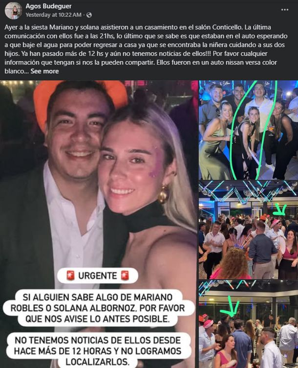 El último contacto que habían tenido con la pareja fue alrededor de las 21:00, cuando avisaron a sus familiares que esperaban dentro del automóvil hasta que bajara el nivel del agua. Después de ese mensaje, se perdió toda comunicación.