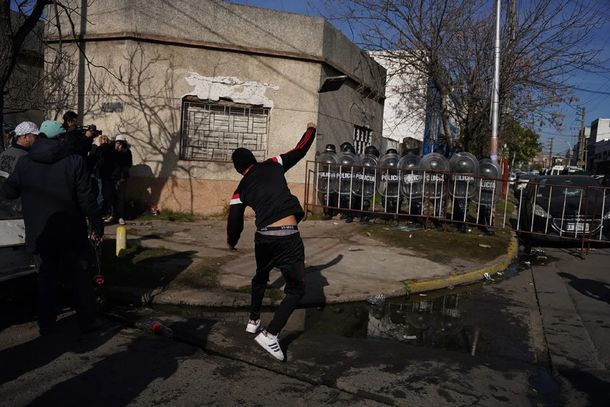Lo cierto es que, una vez allí, algunos de los presentes comenzaron a arrojar piedras y escombros contra los uniformados que se estaban situados en la esquina de la dependencia policial, en la intersección de las calles Warnes y José Ignacio Rucci.