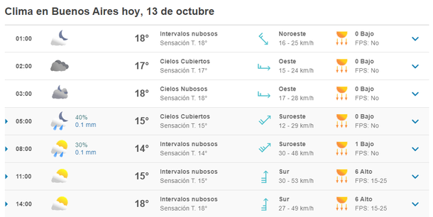 Cuando nadie lo anunciaba, este miércoles el Servicio Meteorológico Nacional (SMN) publicó que hay posibilidades de lluvias para este jueves 13 de octubre en la Ciudad y el Gran Buenos Aires.