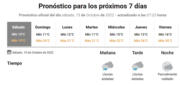 El Servicio Meteorológico Nacional (SMN) anuncia lluvias para la jornada de hoy, sábado 15 de octubre de 2022, para la Ciudad y el Gran Buenos Aires.
