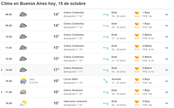 En tanto, el sitio especializado Meteored anuncia que las lluvias por las tarde comenzarían a las 16 horas y podrían prolongarse hasta cerca de las 18.