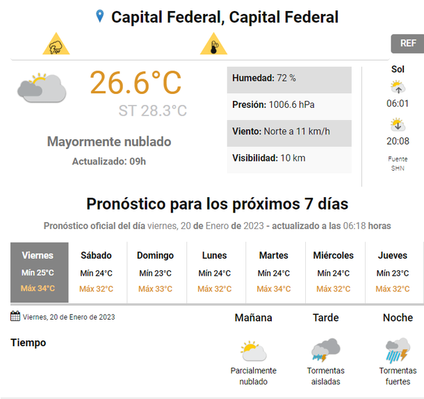 Lluvias fuertes con posible caída de granizo anuncia el Servicio Meteorológico Nacional (SMN) para este viernes 20 de enero de 2023 en la Ciudad de Buenos Aires y el conurbano bonaerense.