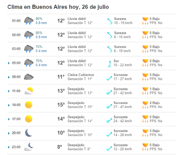 Pronóstico del tiempo extendido en Buenos Aires