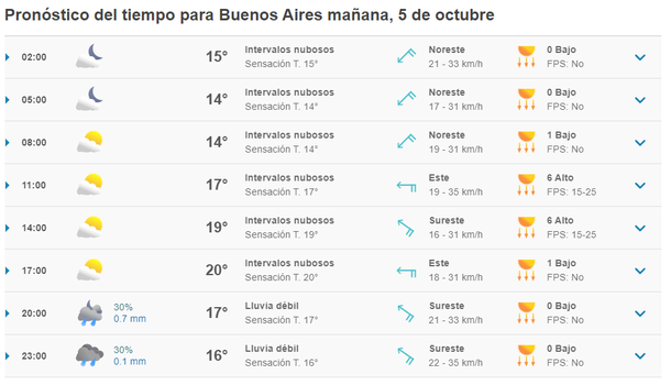 El Servicio Meteorológico Nacional (SMN) anuncia lluvias para el miércoles 5 de octubre en la Ciudad y el Gran Buenos Aires, luego de varios días consecutivos a pleno sol.