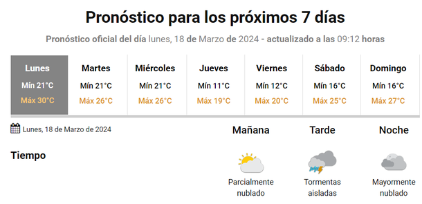 Pero para este lunes hubo un cambio en las previsiones, porque la temperatura máxima se espera que pueda superar los 30 grados.
