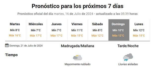 Por ahora, el domingo es otro día con posibilidad de tormentas, según el organismo oficial pero otros pronosticadores indican que también el sábado podría llover.