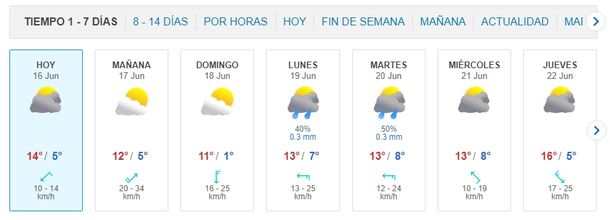 En tanto, el domingo -que se festeja el día del Padre- está pronosticado cielo parcialmente nublado a mayormente nublado, viento del sector norte y una temperatura mínima de 6 grados y máxima de 15.