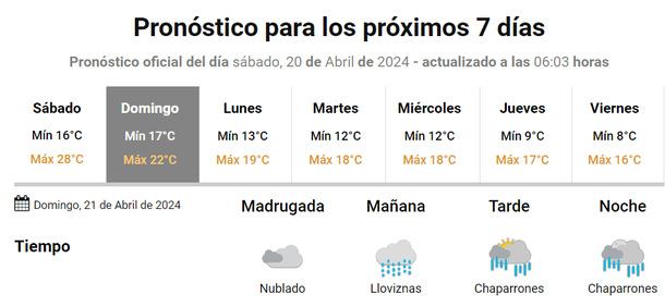 Hasta ahora solo se anunciaban alguna posibilidad de lluvias desde el domingo por la noche pero ahora se esperan tormentas y chaparrones durante toda la jornada de este 21 de abril que se viene.