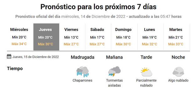 Los chaparrones comenzarían a las 2 de la mañana de este jueves 15 de diciembre y luego mantendría la inestabilidad hasta pasado el mediodía.