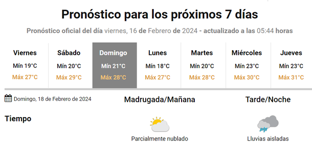 El SMN y diferentes pronosticadores anuncian algunas lluvias aisladas para la jornada del domingo 18 de febrero.