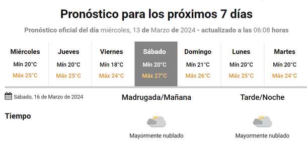 Además, se esperaban lluvias para la jornada del sábado pero finalmente no habrá precipitaciones el fin de semana y se espera buen tiempo para los próximos días.