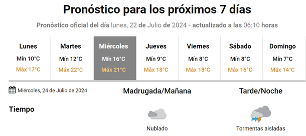 A partir del jueves el tiempo mejorará y no se esperan lluvias para los días siguientes, incluido el fin de semana, el último del mes de julio.