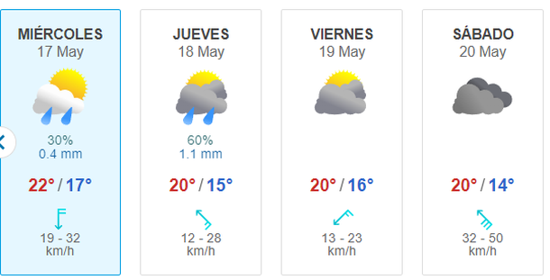 Luego y ya pensando en el fin de semana extra largo del 25 de mayo, no se esperan lluvias, aunque no se descartan chaparrones hacia fin de mes de mayo.