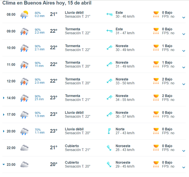 De todos modos, durante toda esta mañana del lunes 15 de abril Capital Federal y sus alrededores están bajo alerta naranja y por la tarde se mantendrá la advertencia climática pero ya en amarillo.