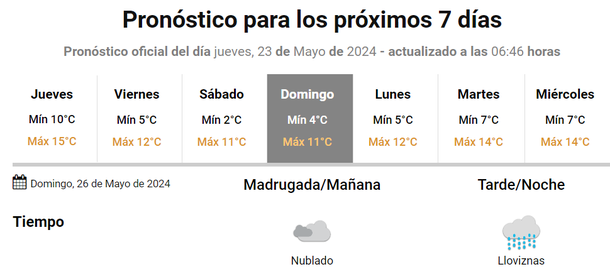 Y antes de las lluvias del domingo llegará un día helado, porque para este sábado 25 de mayo se esperan las marcas térmicas más bajas del año en Ciudad y Gran Buenos Aires.