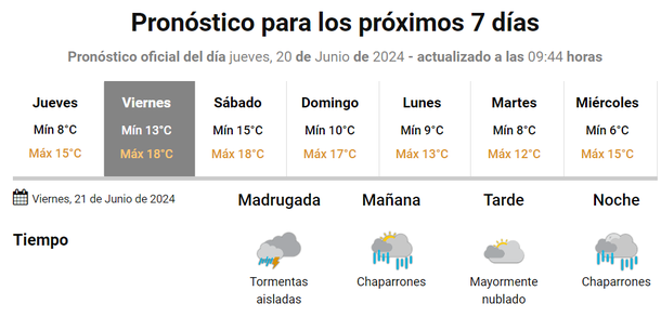 La mala noticia es que las lluvias se prolongarán durante la jornada del sábado 22 de junio, al menos hasta pasado el mediodía.