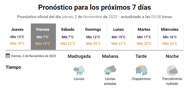 Ahora se esperan lluvias hasta el viernes por la tarde, algo que se podría mantener hasta llegada la noche.