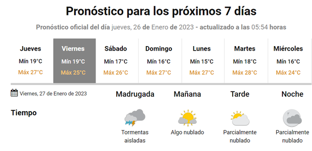El Servicio Meteorológico Nacional anuncia lluvias para todo la jornada del jueves y para las primeras horas del viernes 27 de enero.