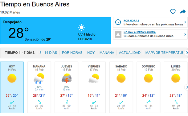 Las lluvias de este lunes en Ciudad y Gran Buenos Aires trajeron algo de alivio y se pudo sobrellevar el día pero desde este martes 14 de febrero otra vez se siente el calor.