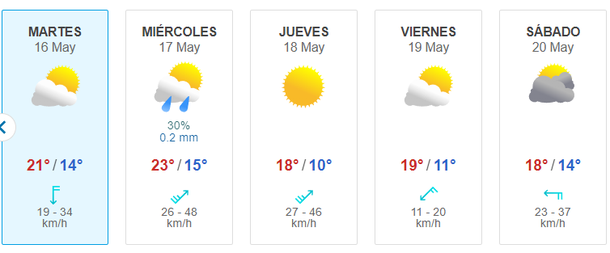 En tanto, para el fin de semana, sábado 13 y domingo 14 de mayo, se esperan buenos días, con máximas superiores a los 20 grados y con buena presencia de sol.