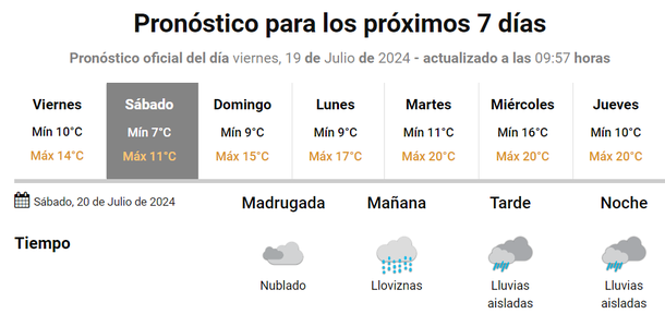 La buena noticia del tiempo es que a partir del lunes que viene, 22 de julio, no se esperan lluvias, al menos por ahora, durante todo el resto de la semana.