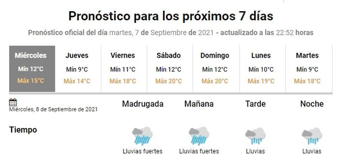 El organismo anticipa lluvias fuertes para casi todo el día, y temperasturas que osciarlán entre 12 y 15 grados.