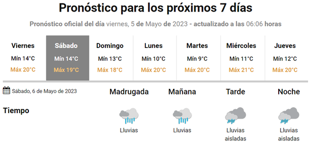 Si bien durante la madrugada del domingo se podría producir algún chaparrón, partir del amanecer y hasta el fin del día no se esperan lluvias.