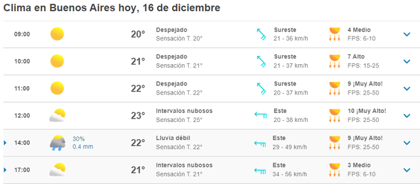 Cuando nadie lo esperaba, este viernes 16 de diciembre podría haber lluvias en Ciudad y Gran Buenos Aires, algo que se produciría a partir de los fuertes vientos que se esperan.