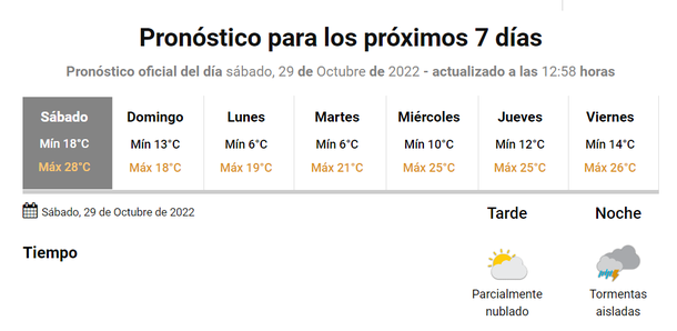 Hacia la noche mejorará el tiempo y por ahora no se esperan lluvias para el resto de los días de la semana que viene.