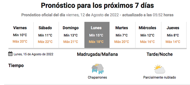 De todos modos no hay que alarmarse pero los que salgan el domingo a la noche, teniendo en cuenta que el lunes es feriado, debe saber que durante la madrugada del 15 de agosto de 2022 puede haber chaparrones en la Ciudad y el Gran Buenos Aires.