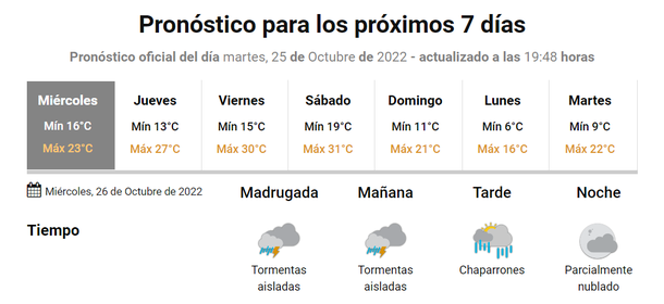 Se espera que llueve durante gran parte de la jornada, aunque a partir de las 17 horas las condiciones climáticas mejorarían.