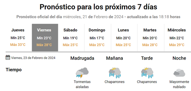 En principio, a partir de hoy por la noche comenzará la inestabilidad y las chances de tormentas para este viernes 23 de febrero serán más que altas y durante todo el día.