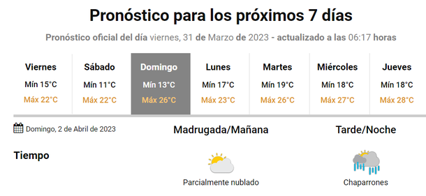 A partir del lunes al mediodía se espera buen tiempo, con clima templado y el miércoles 5 de abril llegarían más lluvias en horas de la mañana.