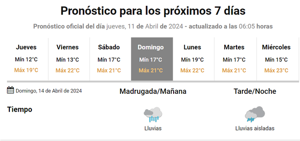 En tanto, la jornada del sábado 13 de abril ya el tema podría complicarse más porque se anuncian chaparrones dispersos durante toda la jornada.